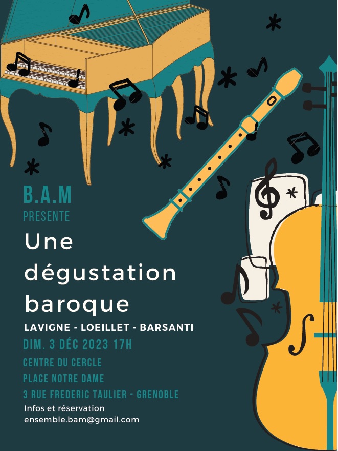 Dimanche 3 décembre à 17h : Baroque au Menu, Centre du Cercle, Place Notre-Dame, 3 rue Frédéric Taulier, 38000 Grenoble.