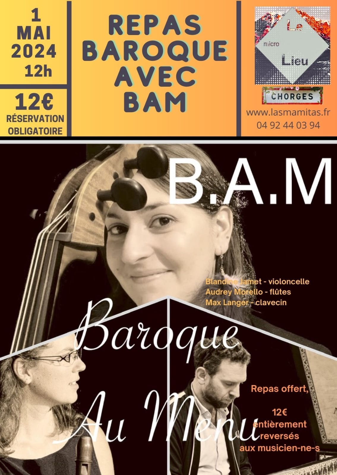 Mercredi 1er Mai à 12h : Baroque au Menu, Le Micro Lieu, Chorges (05)