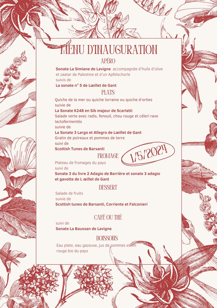 Vendredi 1 décembre 2023 à 19h30 : Baroque au Menu, concert privé.