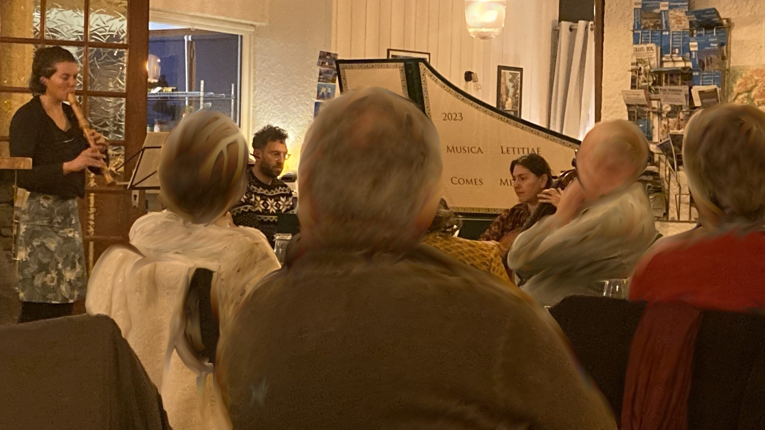 À la fin du concert, nous avons eu le plaisir de discuter avec une grande partie du public. Pour nous, ces moments d’échanges sont précieux et nous les apprécions particulièrement. C’est là que l’on peut pleinement répondre aux questions sur la musique baroque, nos instruments (évidemment le clavecin attise les curiosités) et nos parcours.